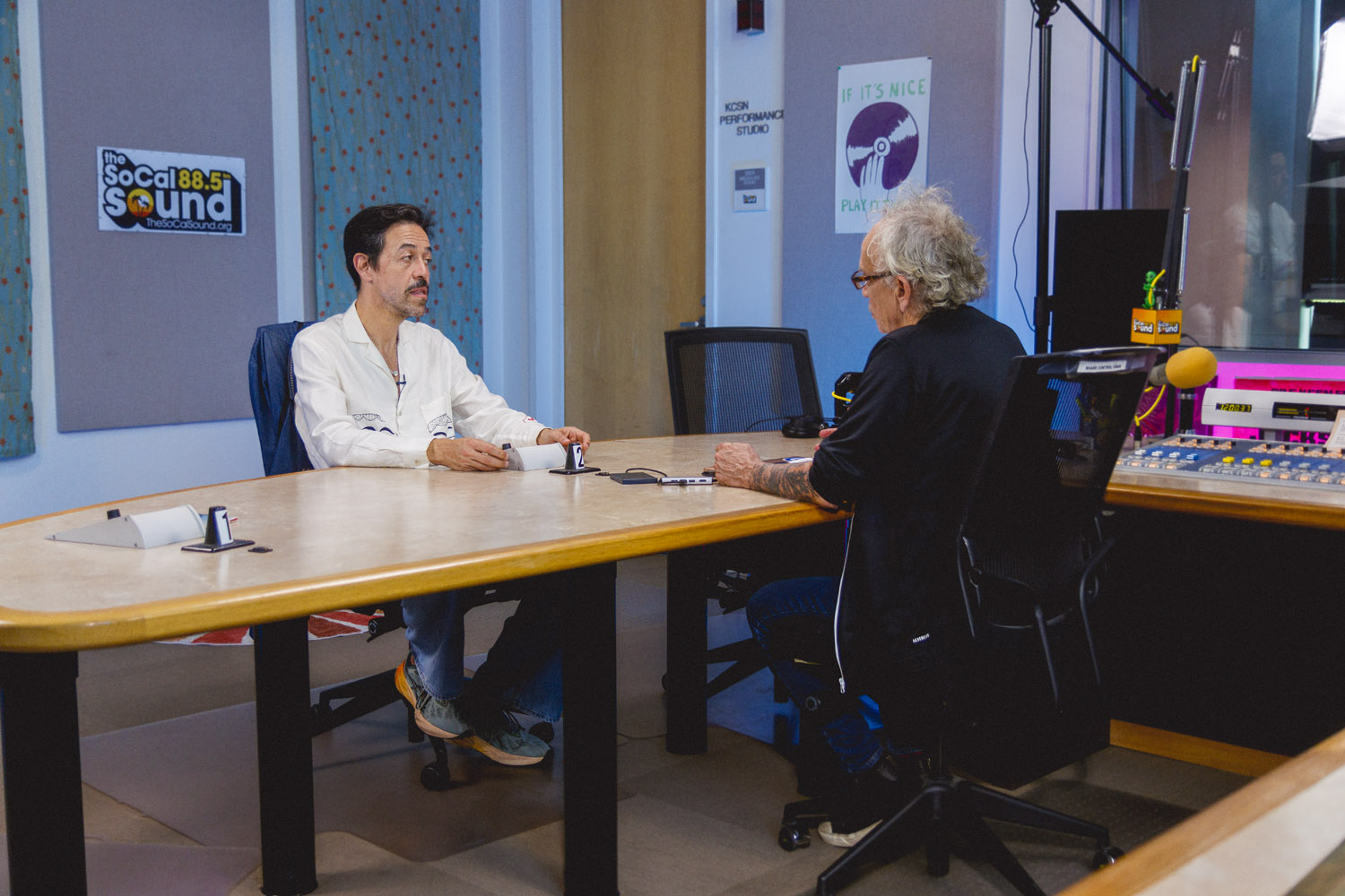 When Meme Del Real walked back into The SoCal Sound studios, it felt like a reunion. A bit longer than a year ago, Meme was here alongside his legendary band Café Tacvba, one of Mexico’s most innovative and genre-defying groups. For this visit, the acclaimed keyboardist, songwriter, and producer returned not as part of an ensemble — but as a solo artist discussing his new albume La Montaña Encedida with Nic Harcourt and performing 4 songs in and exclusive acoustic setting.